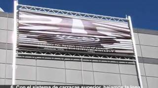 Imprivic :: Montaje de una estructura trust con elevación superior para una lona de grandes dimensiones